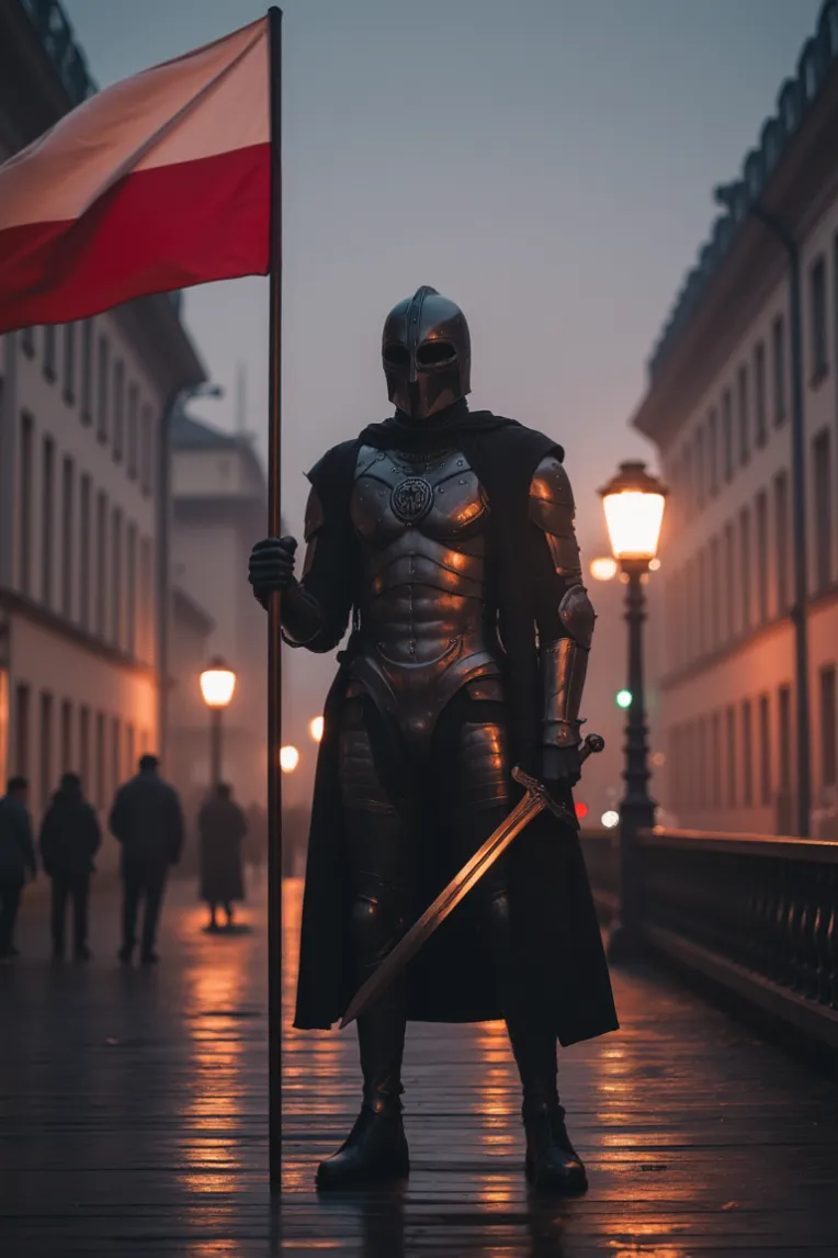 Lora to create a Polish swordsman, with the Polish flag in the background.
