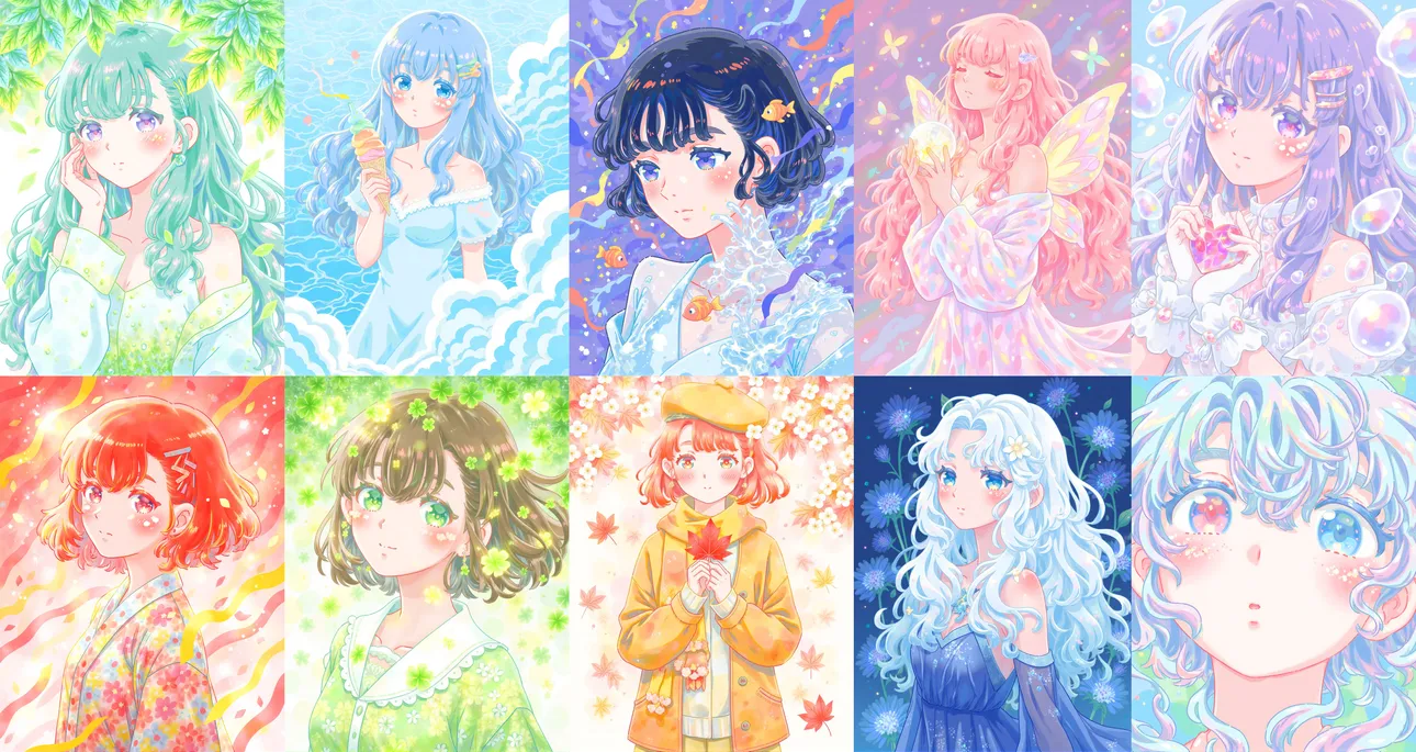 This is a fresh and lovely illustration lora model, combining soft colors, delicate light and shadow and dreamy emotional expression, so that each work is full of fresh and lovely summer atmosphere.