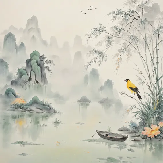 Welcome to use this Chinese style illustration Lora. As its name suggests, it specializes in Chinese style scenery illustrations, dedicated to creating a "simple, aesthetic" style of illustration with a large white space, mainly focusing on wet watercolor and ink.