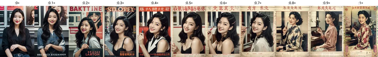 When the weight is below 0.5, borders and text will be added to the image (of course, it's the traditional SD style - messy and chaotic), giving it a bit of a cover feel. When it exceeds 0.5, the old Shanghai effect will start to appear, and the higher the weight, the closer it is to the original style.