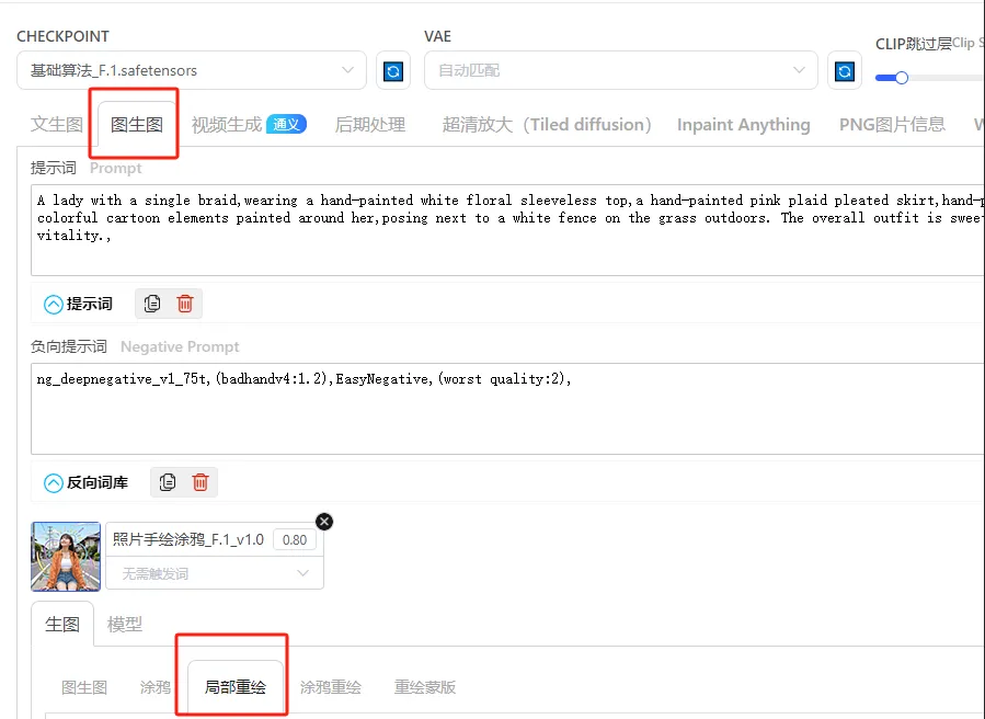 2.添加lora模型:照片手绘涂鸦_F.1