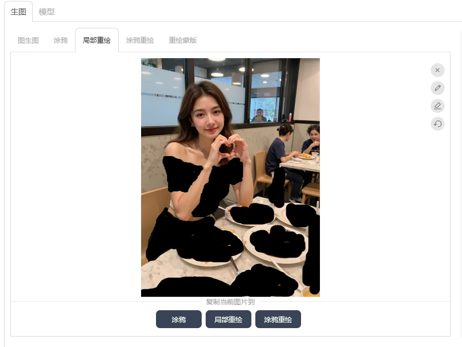 涂抹时尽量精细,不需要重绘的不要涂抹到,否则容易生成效果不佳。
