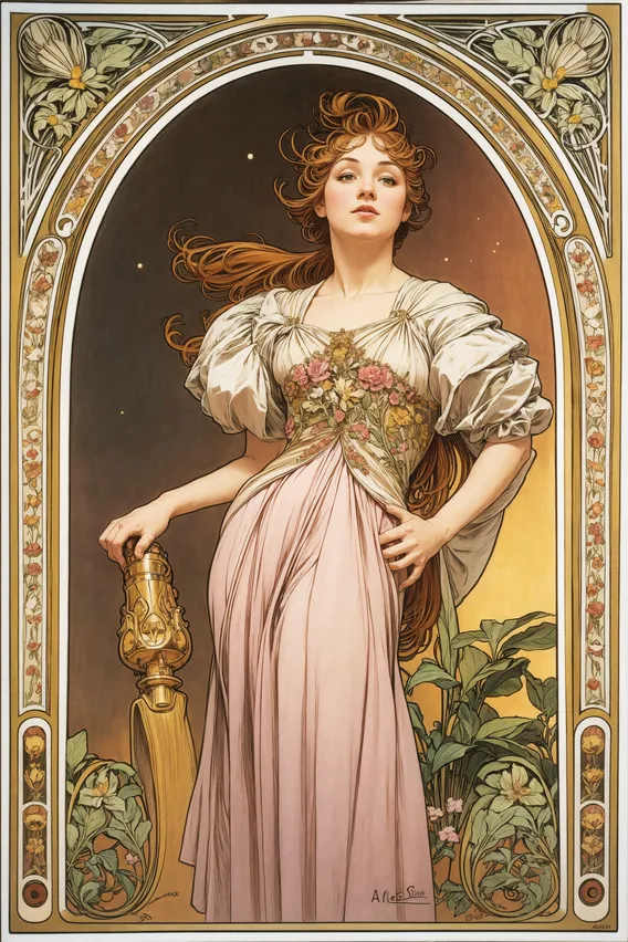 -- Required triggering words: art nouveau, stylized, Alphonse Mucha