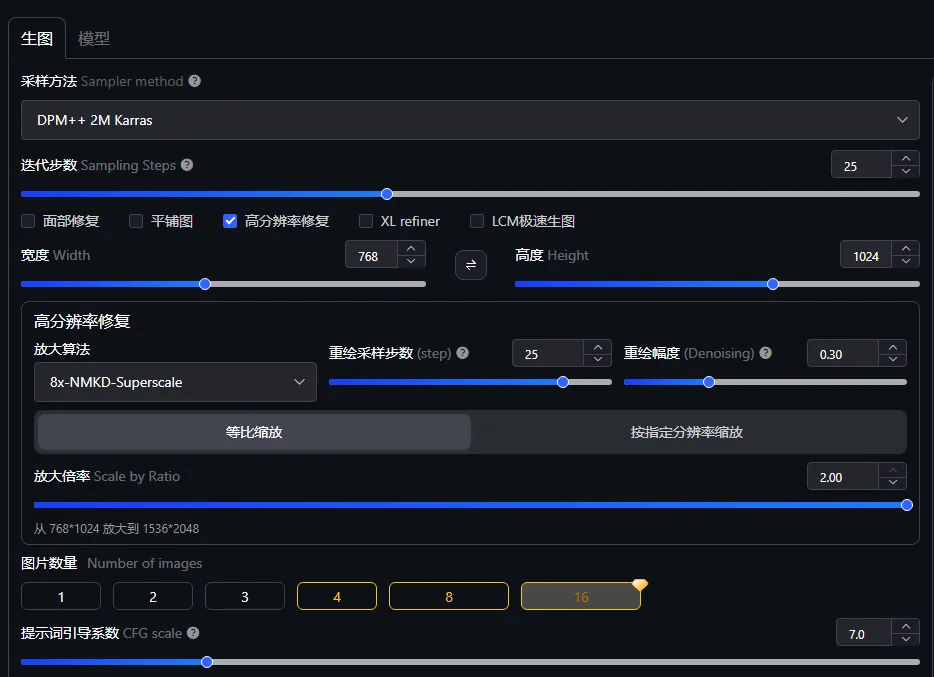Recommended Resolution: 768x1024 (Be sure to enable high-resolution repair)