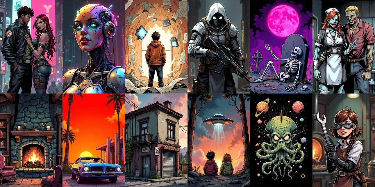 Comic-style Illustration with Bold Outlines and Dark Shadows