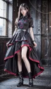 <lora:yingtaomiao-cgirl:0.6> , <lora:lianyiqun026(dress)-极氪写实MAX:0.65>,(lianyiqun026\(dress\)),(((belt, capelet, long sleeves, black dress, ascot, bow, skirt, petticoat ,Military boots)))