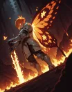 ユーザーによってアップロードされましたFlatline, Flat vector illustration,,masterpiece, best quality, good quality, very aesthetic, absurdres, newest, 8K, depth of field, focused subject, dynamic angle, dutch angle, Tall female knight , yello long electric hair, glowing eyes, wearing detailed armor, wielding yellow electric glowing sword, she is sitting down, sword resting against the ground, yellow electricity sparks, yello electricity butterfly wings, glowing butterfly wings, holofoil glitter, faint, hair flowing in the wind, glowing, ethereal, otherworldly glow, dangerous, magical heaven palace in background, heaven and clouds in background, hkvaloria <lora:WingsOfValoriaIL:0.85>