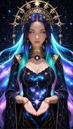 で作成masterpiece, best quality, amazing quality, very aesthetic, absurdres, cute, detailed eyes, newest, realistic,1girl, short platinum blonde hair, radiant golden armor, intricate engravings, celestial wings, holding a glowing longsword, floating in a starry sky, divine presence, dramatic lighting
