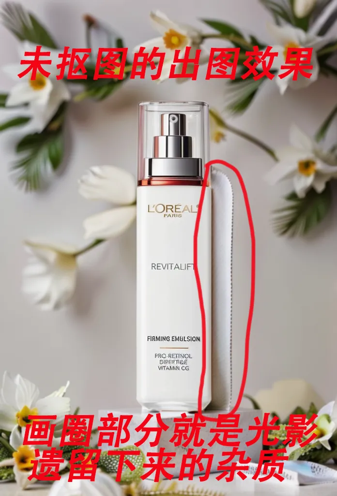 It is recommended to import the product image into the workflow after clipping. Without clipping, AI may incorporate some small details of the product into the image. Refer to the following example:
