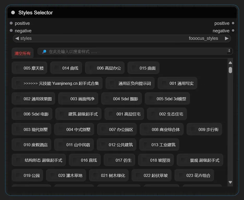Prompt words can be inserted through the MetaSkill prompt word plugin, check the rendering or photography, as well as the corresponding commercial or office keyword options. You can also connect to the ollama node and let it automatically write prompt words based on the selected words.
