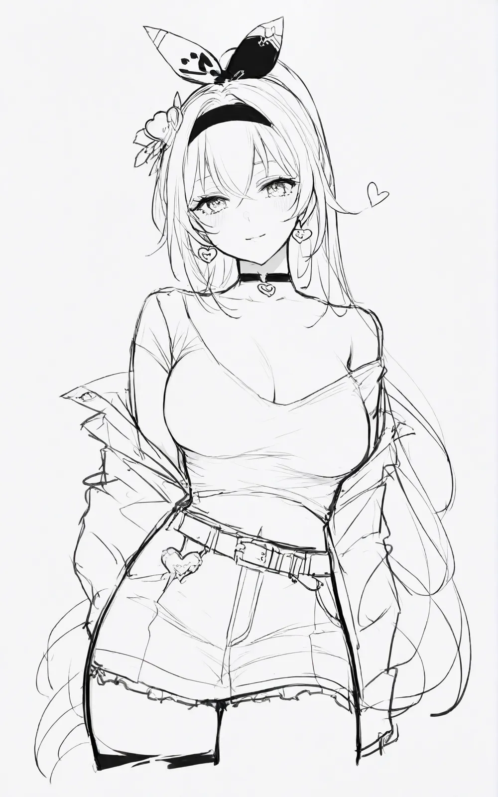 单色线搞起手建议:white background,lineart,line,monochrome,