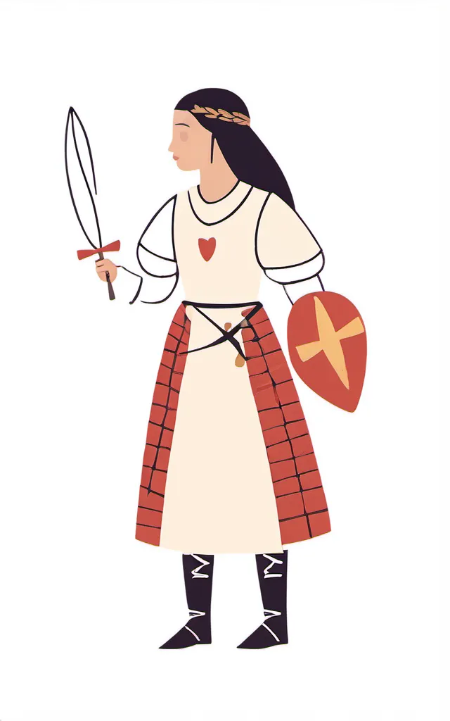示例1:简笔插画,扁平插图1个穿着古罗马盔甲的女孩,中世纪战士,极简插图,白色背景