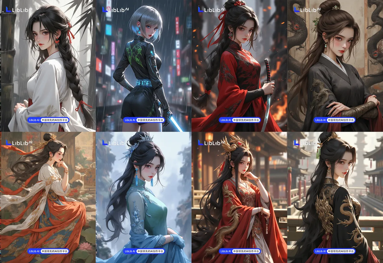 本模型可轻松生成CG古风美女形象风格画面,内容并具备良好的质感,在精细细节表现上有丰富的表达。