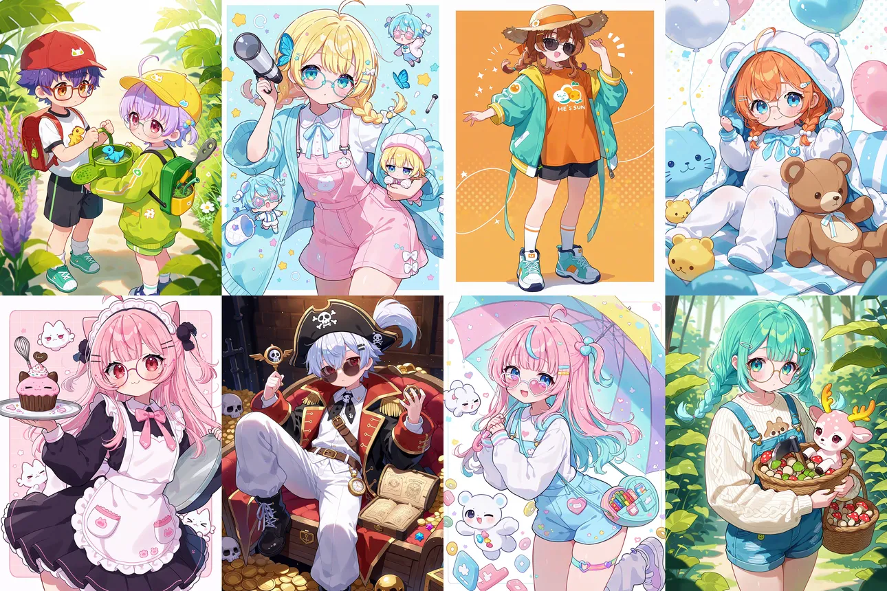 ③ Art Creation and Entertainment Content Production: Artists and designers can utilize the cute style AI image generation model to create cute artistic works with unique styles, such as illustrations, comics, etc. At the same time, this model can also provide rich materials for creating cute characters and scene designs for games, animations, etc., entertainment content production.