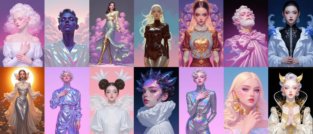 此模型可用在创意设计,经典美术艺术。叠加lora人物场景便面有一层光晕附着,制作卡牌,人像壁纸等等创意设计上面。