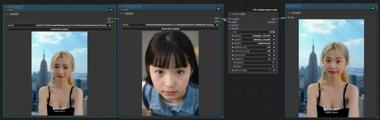 Use ReActor nodes for fast face swapping, efficiently and seamlessly replacing facial features;