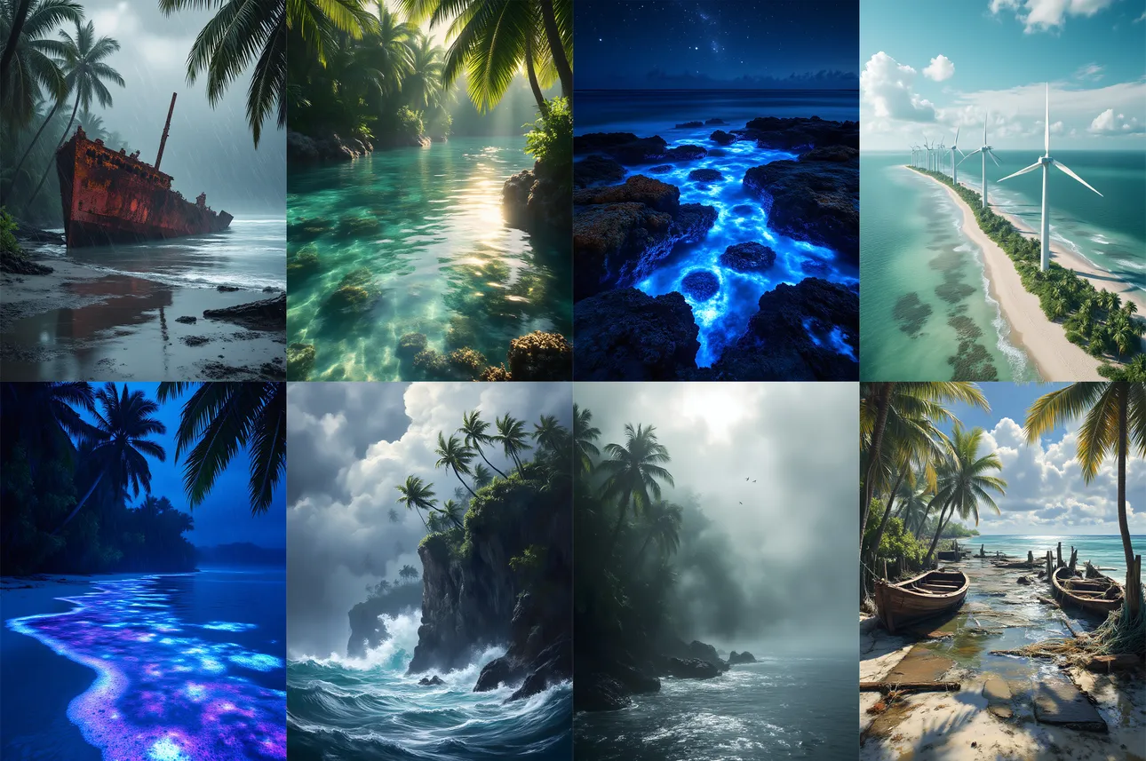 本模型可轻松生成梦中夏日海岛素材,内容并具备良好的质感,在精细细节表现上有丰富的表达。