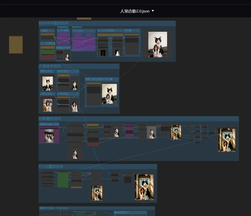 还有另一种玩法,初步采样融合组件和人宠合并组件直接不要, 直接到PS合并人宠再把图像扔到光影融合组件。