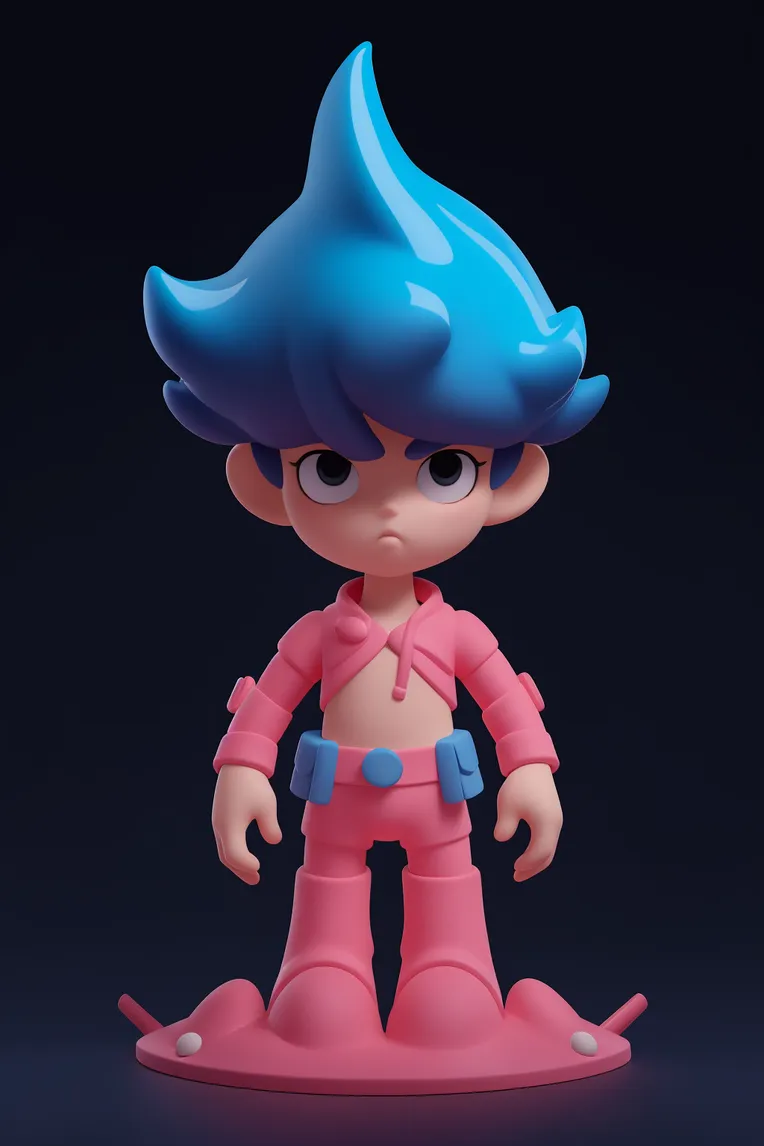 Positive keywords: (solo), blue theme, masterpiece, Blu, designer toy, solo, cold, a dreamy scene,