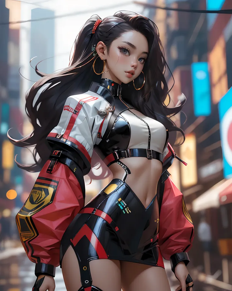 best quality, cyber sttyle girl, 1girl, solo, short hair, blurry background,